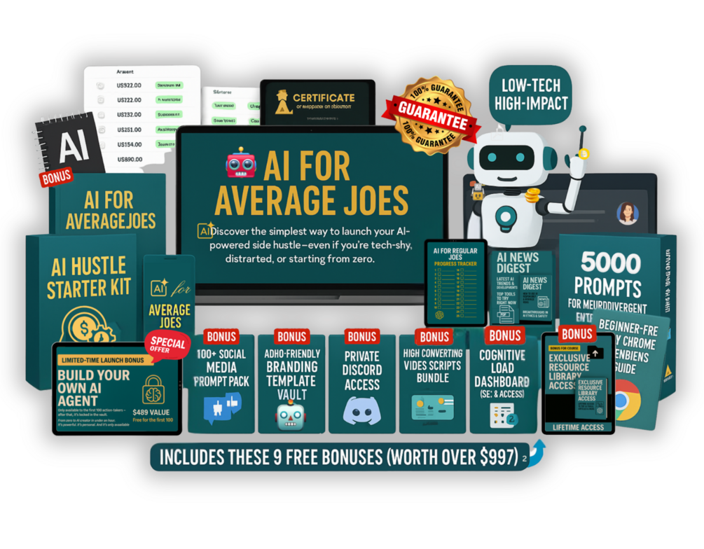30-Day AI for Average Joes Course: A daily step-by-step system that builds your skills fast — even if you’re starting from zero. No theory. No confusion. Just clear instructions and real-world applications.